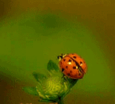 <... crecía una gran mata de biznaga, cuyos airosos tallos prolongados y blancas umbelas de flores menuditas con la punta roja en medio... ><... Parose, al ver un insecto semejante a una media bola de coral pulido, con pintas de esmalte negro, que le había caído sobre... el dorso de la mano y allí permanecía inmóvil.