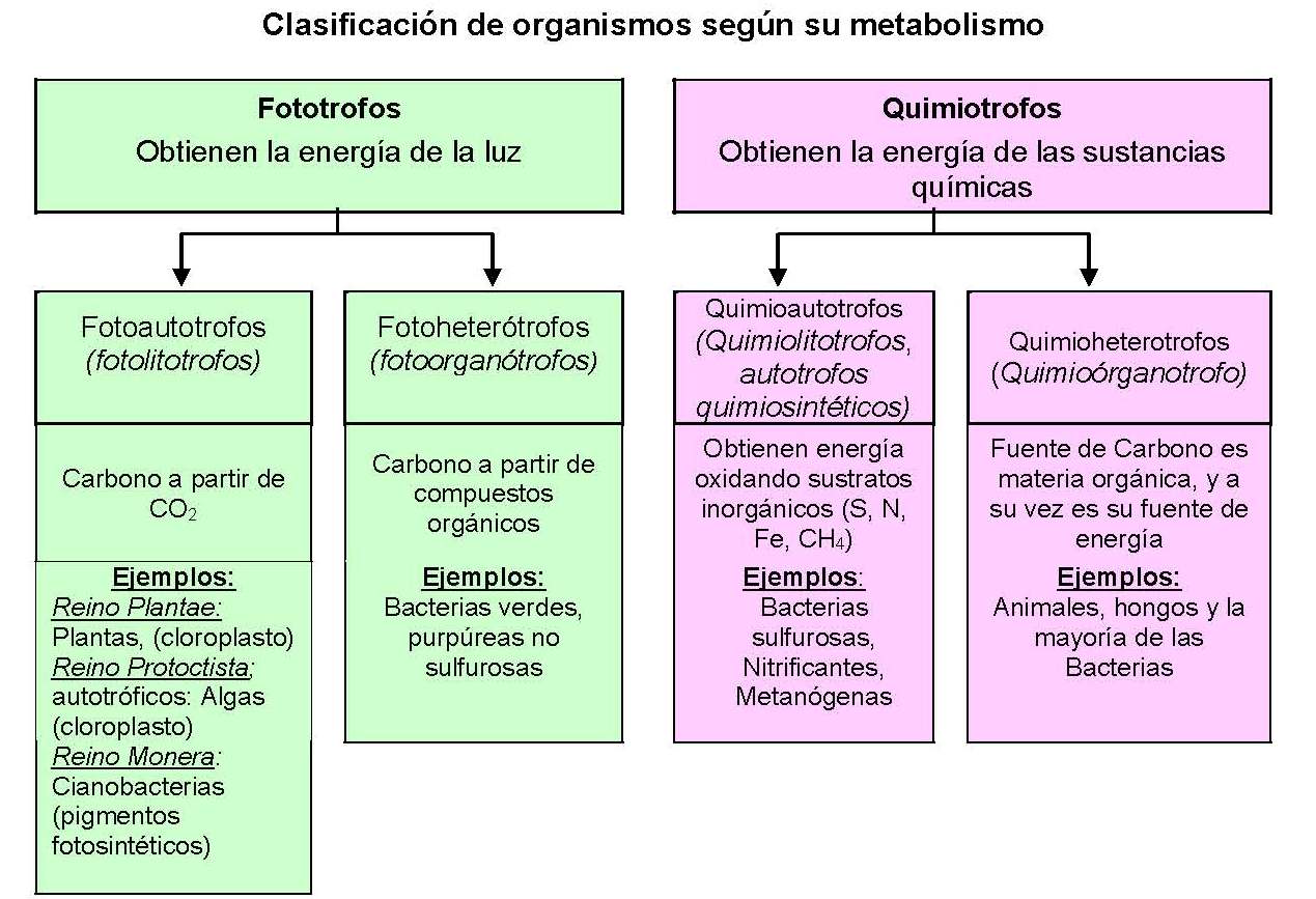 los diferentes tipos de "METABOLISMO". Pues, también de esta forma, pueden clasificarse los seres vivos: