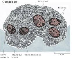 Existen, ademán, otras células características del tejido óseo... son las... llamadas osteoclastos, cuya misión es la destrucción de hueso, con el fin de "remodelar" el mismo...